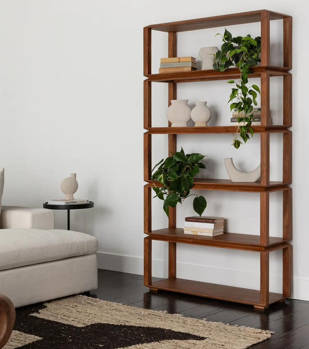The Fresno bookcase brings a refined sophistication with its clean lines to your living space. Its rich Acacia wood exudes natural elegance, seamlessly blending into any decor. Featuring 5 shelves, it provides ample storage for books, plants, accessories, or any items requiring beautiful display. Offering excellent value, the Fresno bookshelf combines quality craftsmanship with practical storage solutions, making it an attractive and affordable choice.