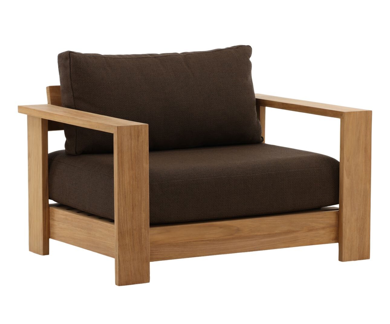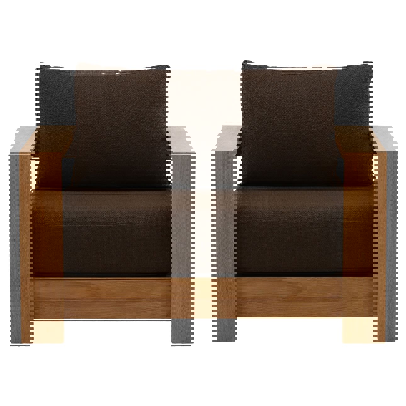 The Naya Teak Outdoor Chair combines timeless design with lasting durability. Crafted from solid teak and upholstered in weather-resistant Woolacombe Chocolate acrylic fabric, this outdoor sofa offers comfort, style, and resilience for year-round use. Perfect for patios, decks, and garden spaces.