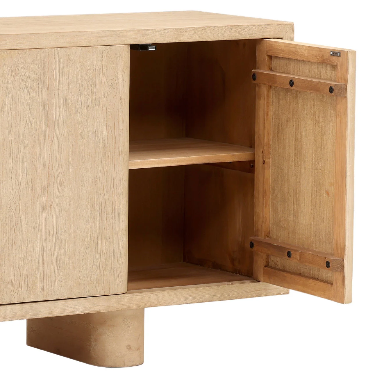 Modern rustic influences make this stunning sideboard perfect for your living room or dining room. Consciously handcrafted, this console measures 73 in length and is made from solid reclaimed pine hardwood and finished in a whitewash tone. This sturdy construction cabinet features 4 doors that open to its large interior storage space and includes shelves to hold all your belongings neat and well organized.