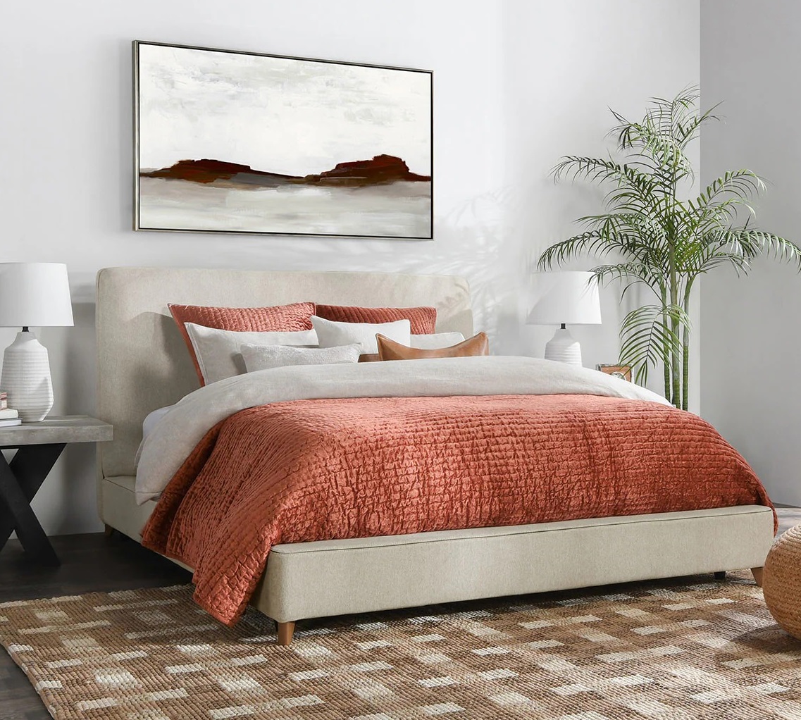 The Tate Bed combines sturdy, solid-wood craftsmanship with a soft polyester-blend fabric for a clean, modern platform look. Its soothing neutral palette adds a sense of calm and balance to any bedroom, creating the perfect environment for rest and relaxation. Designed for both durability and comfort, this classic upholstered bed brings timeless style and tranquility to your space.